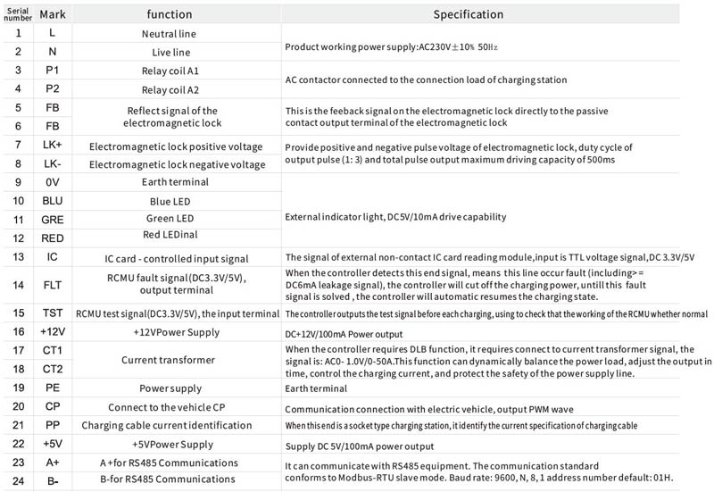 The controller additional functions include: non-contact IC card connection module, DC leakage detection module (RCMU), RS485 communication interface equipment, plug lock device, external emergency stop button, etc.